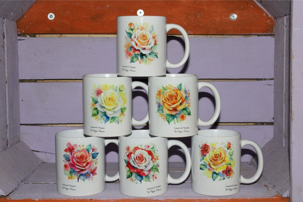 L’atelier Sublimation : impression avec une encre spéciale sur différents supports. Les mugs résistent au lavage. Personnalisation possible sur demande