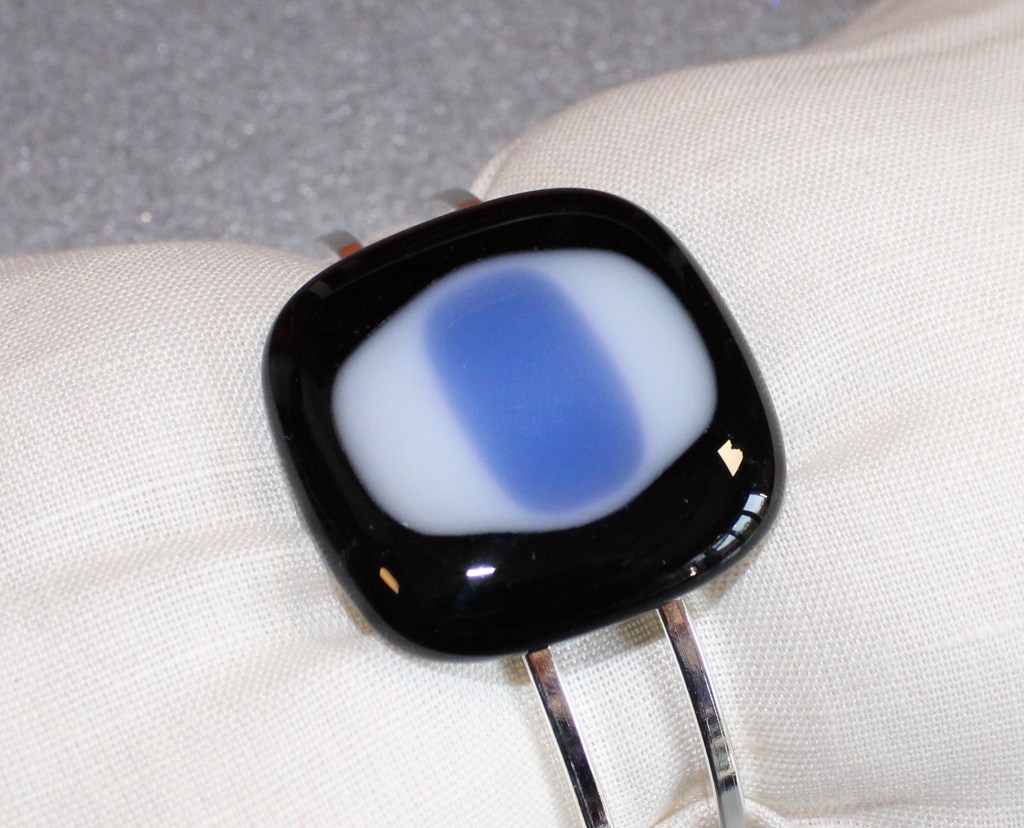 Les bijoux en verre sont faits à partir de la technique Fusing. Les plaques de verres sont chauffées à 800°C après découpes